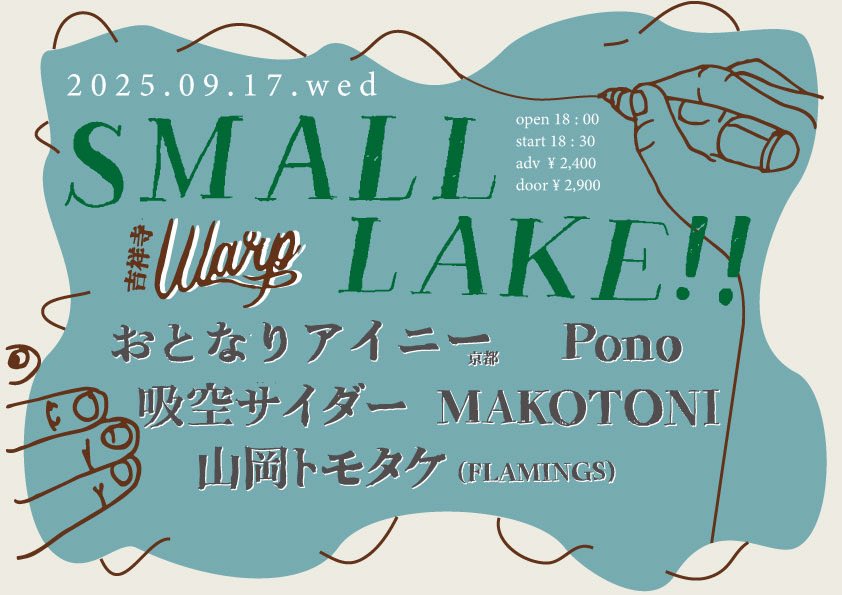 ⠀//𝑵𝑬𝑾𝑬𝑽𝑬𝑵𝑻\\9月17日(水)吉祥寺ワープpresents「SMALLLAKE!!」出演おとなりアイニー(京都)吸空サイダーPonoMAKOTONI山岡トモタケ(FLAMYNGS)open..