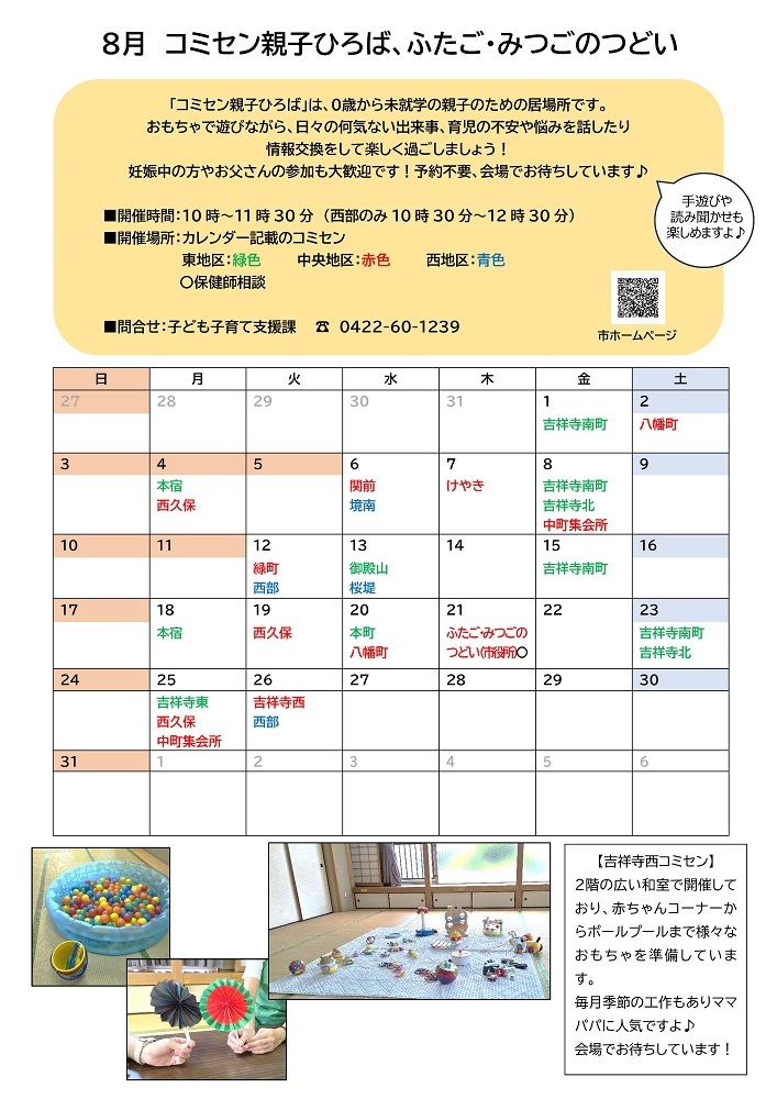 【コミセン親子ひろば】遊びながら、楽しく過ごしましょう。妊娠中の方も大歓迎!日時・場所:市HP参照対象:0歳~未就学の親子予約:不要問:子ども子育て支援課TEL0422-60-1239#子育て#武蔵野..
