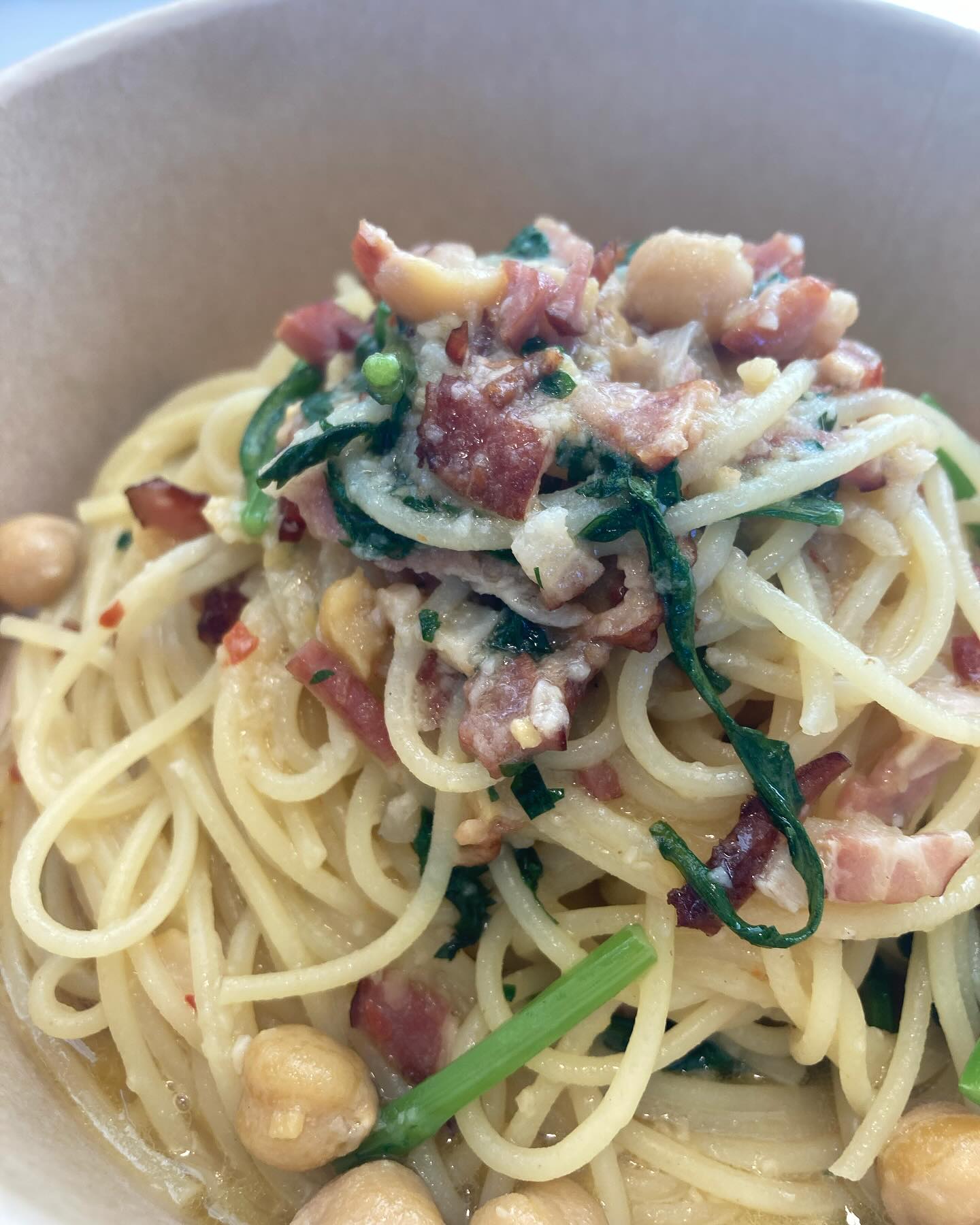 皆さまこんにちは☀️11月5日(火)本日 営業します😊Bのパスタメニュー変更しました。『春菊とひよこ豆ベーコンのペペロンチーノ スパゲティ』 1100円(税込み)*貫井農園の春菊と玉ねぎを使ったパ..