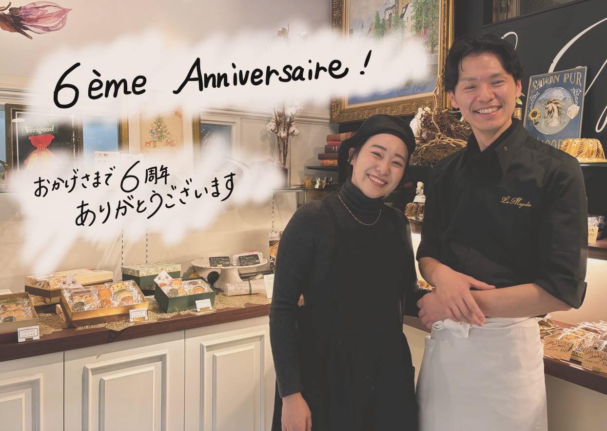 ル マグノリアです。まもなく当店は6周年を迎えます。ここまで続けてこられたのは、日々お菓子を買いに来てくださる皆さまスタッフや家族、私たちを見守ってくださるたくさんの方のおかげです。本当に皆さまへの感..