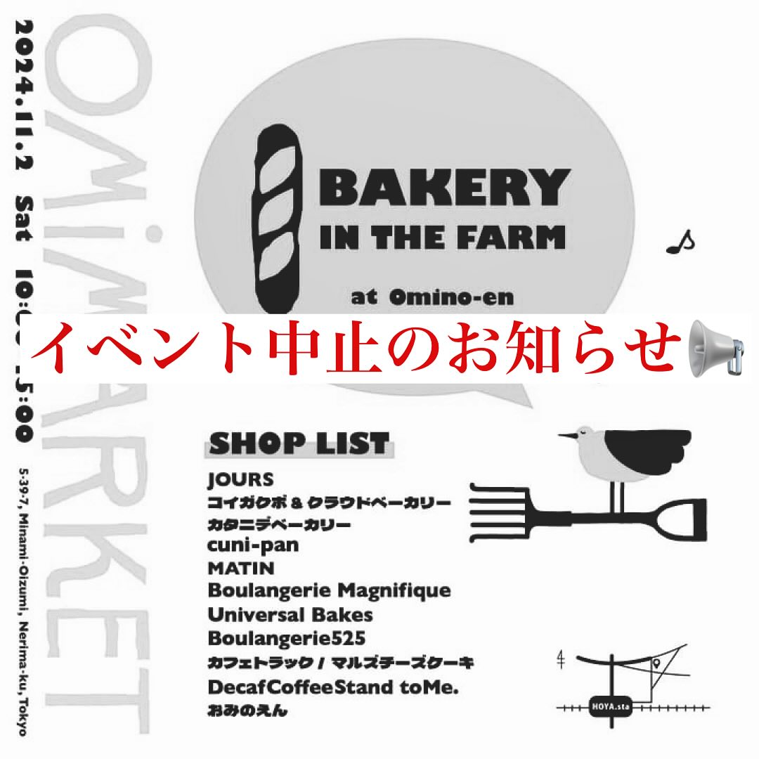 明日予定されていました小美濃園さんでのパンフェスが台風の影響による雨予報の為中止となりました。パン..