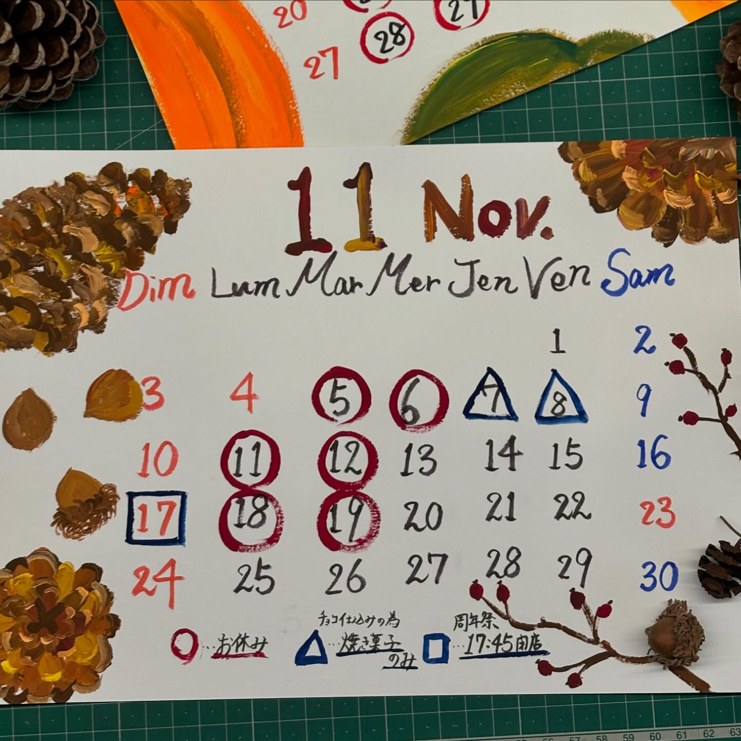 『11月の営業についてのお知らせ』6日(水)ボンボンショコラ仕込みの為、お休み7(木)・8(金)前日に引き続..