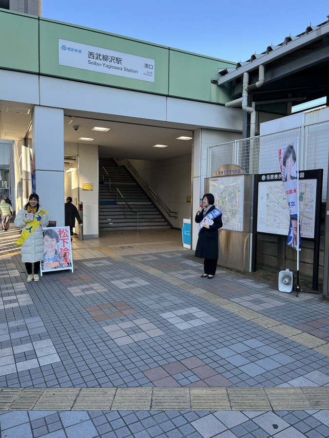 西武柳沢駅南口にて7:00〜8:30まで松下玲子衆議院議員と千間いずみ西東京政策委員と朝のご挨拶。さすがYouTuber、学生さん達にもいずみん先生大人気ですね。