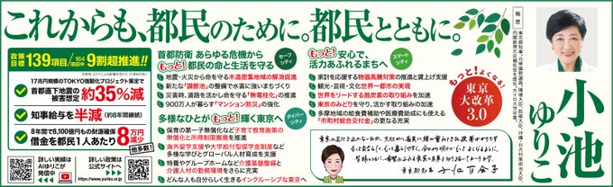 都民の皆さまの力強いご支持を賜り、3期目の当選確実、都政の舵取りをお任せいただきました。ありがとうございます。重責を痛感しております。これからも都民、都議会、都庁職員、皆さまとともに、都政のバージョン..
