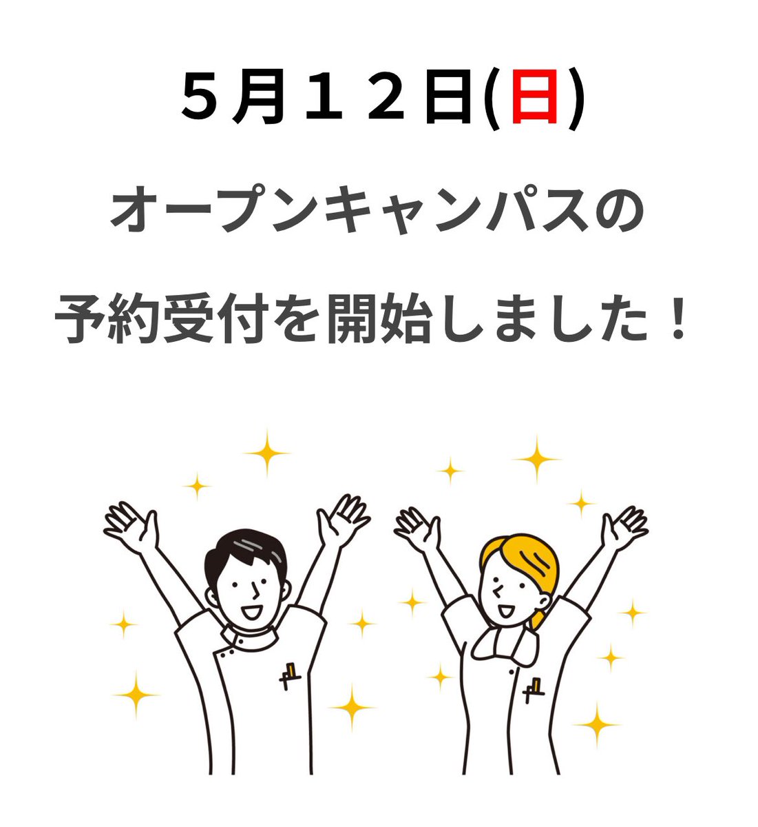 5月12日(日) オープンキャンパスの予約受付を 開始しました!! 本学ホームページよりご予約ください☆