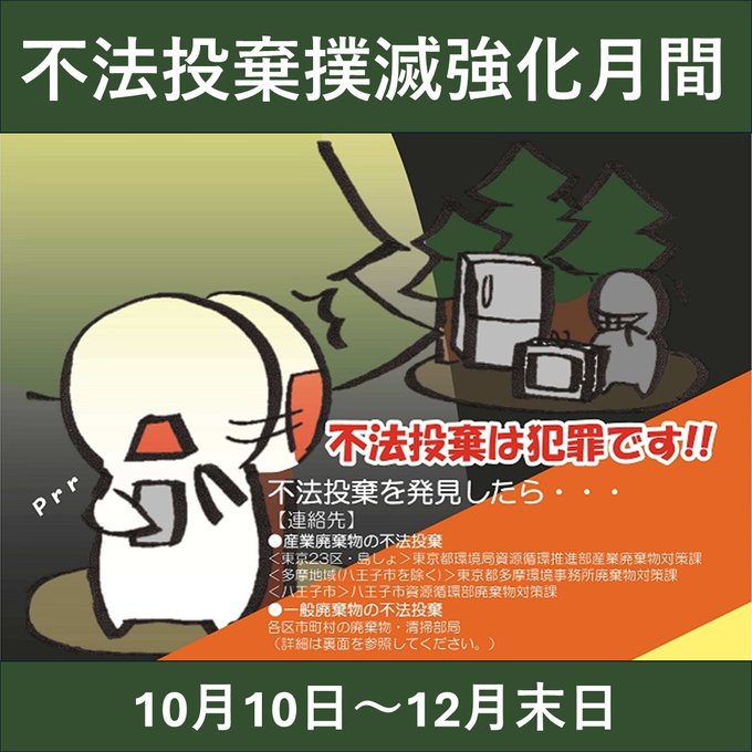 【ポータルサイト#東京と全国各地との共存共栄】不法投棄は犯罪です!10月10日~12月末は#不法投棄撲滅強化月間です!#東京都は#産業廃棄物の不適正処理防止に近隣自治体と連携して取組んでいます!#産廃..
