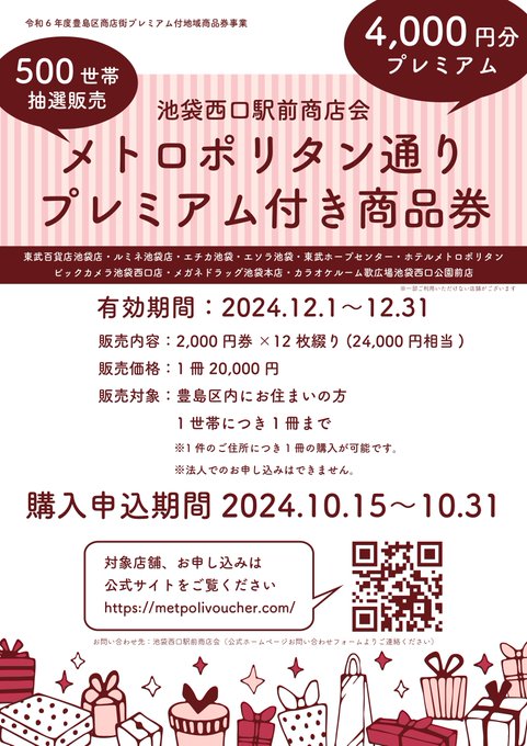 東武ホープセンターでもご利用いただける「メトロポリタン通りプレミアム付き商品券」の購入申込みが本日よりスタート(※一部ご利用いただけない店舗がございます)豊島区内にお住まいの方は是非お申込みください↓..