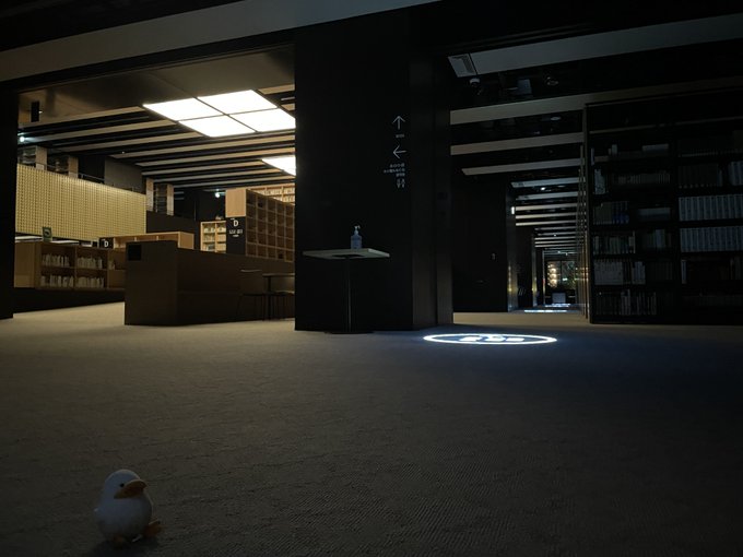 閉館後の図書館内です いつもと違う雰囲気ですね・・・。 #大正大学 #大正大学附属図書館