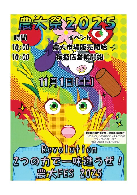 【農大祭2025を開催します!】11月1日(土)に「農大祭2025」を開催します!農大市場秋の収穫祭として、学生が丹精込めて育てた農作物や加工品を販売します。学生たちが準備した模擬店やイベントなど、楽..