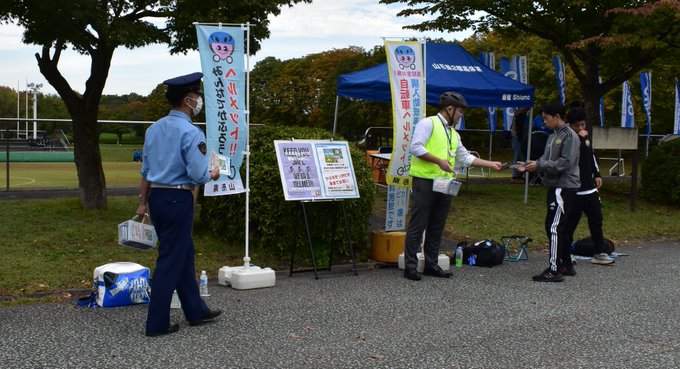 【かぶるきっかけが事故では遅い。】 「山形県高等学校総合文化祭」と「全国高校サッカー選手権大会山形県大会」で 高校生を対象とした自転車ヘルメット購入補助事業の啓発活動を県警察と協力して行いました。