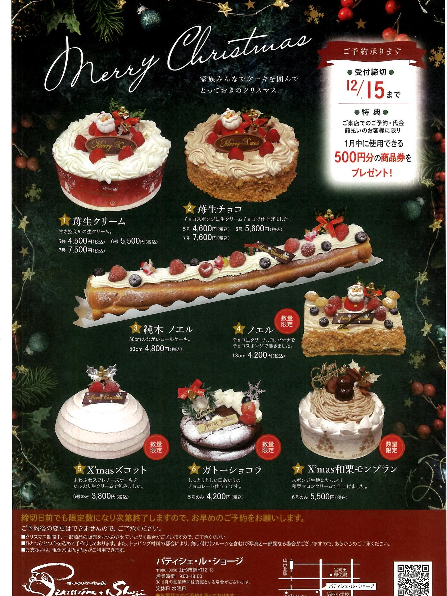 こんにちは♪パティシエルショージです🥰2025年クリスマスケーキのチラシとなります🎄11月4日火曜日からご予約開始となります!!去年の価格そのまま据え置きで販売させていただきたいと思います🙇♀️数量..