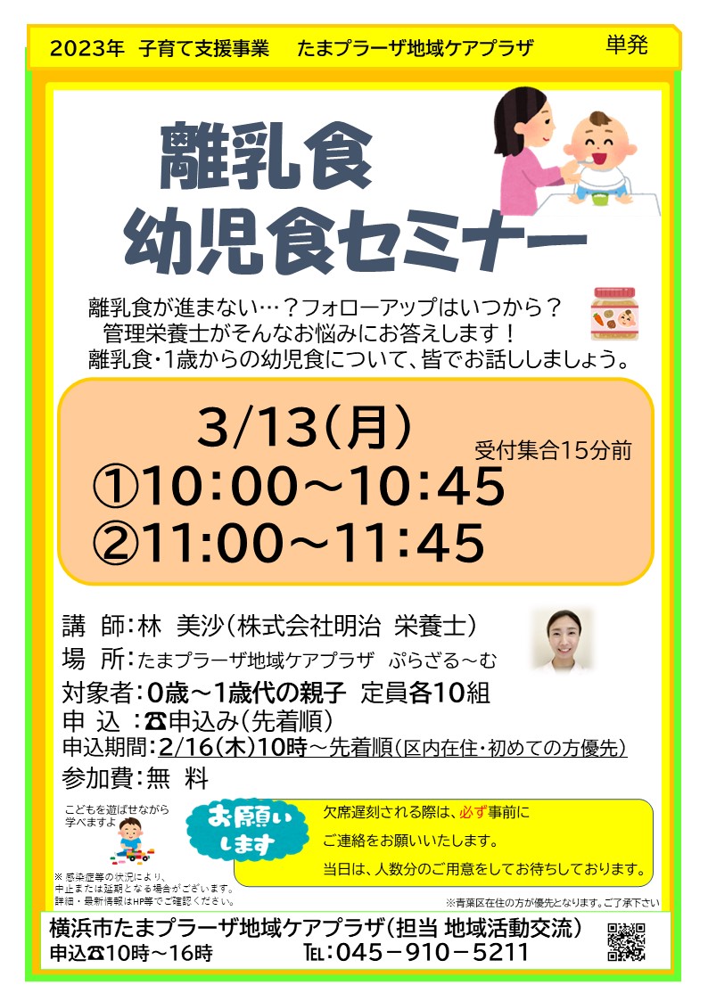 【3/13㈪離乳食幼児食セミナー】申込受付本日より開始。申込先着順です。お待ちしております #たまプラーザ #離乳食 #幼児食001