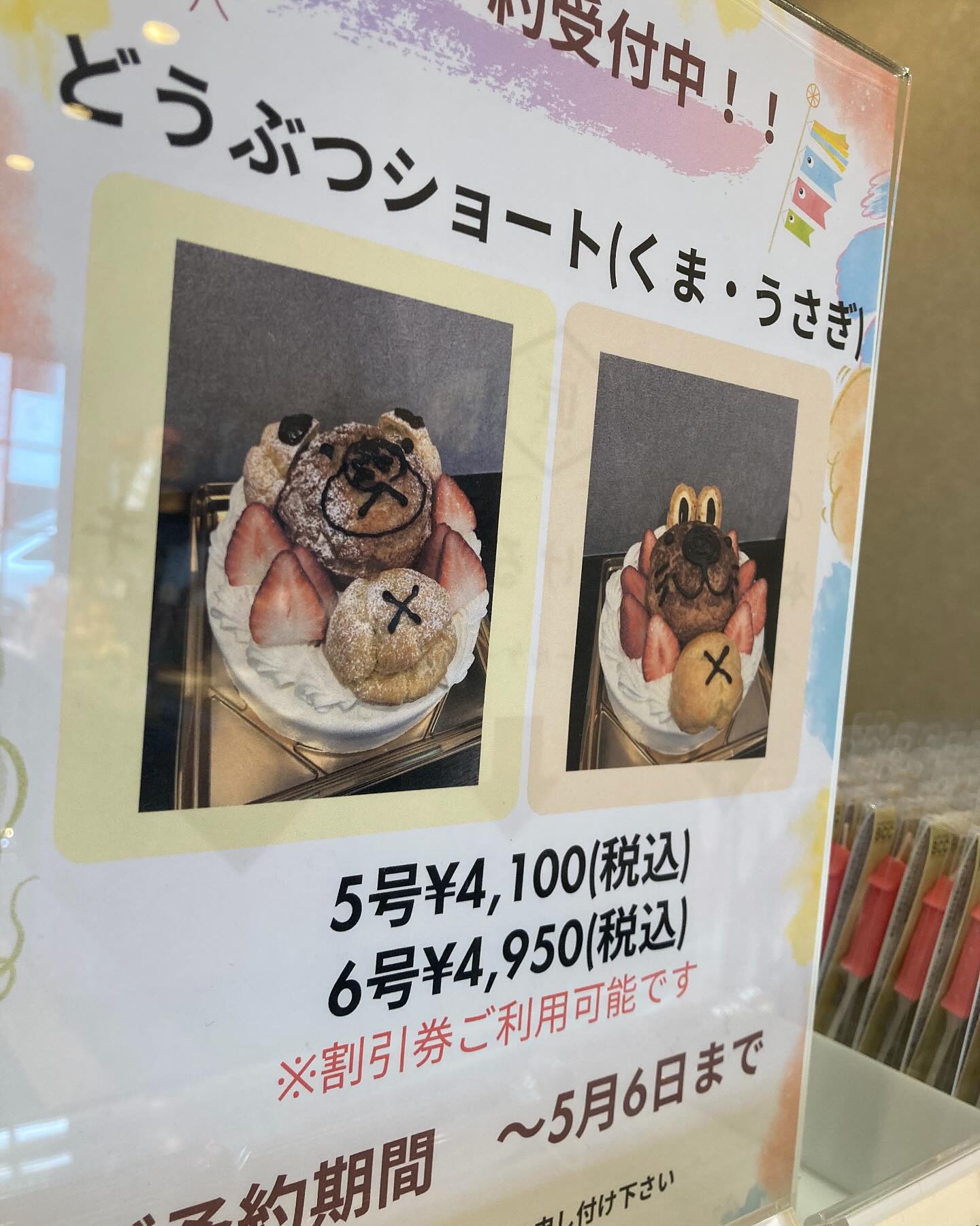 ひな祭りでも販売しておりました「どうぶつショート」、こどもの日も販売いたします割引券の併用も可能で..