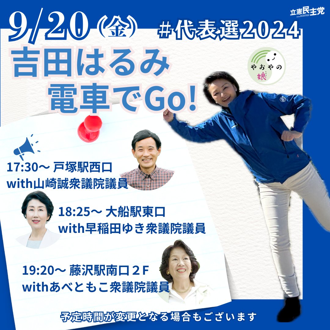 #立憲民主党の代表選挙9月20日(金)#吉田はるみ候補が戸塚駅西口にて皆さんにお訴えします。先輩の候補に交じって、立憲民主党に新しい風を送り続ける吉田さん、決して負けていません。国民の皆さんの目線で政..