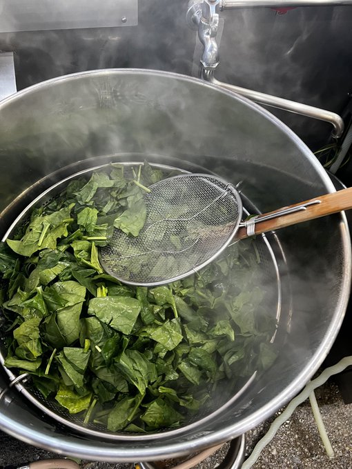 本日の朝仕込み横浜野菜、肉厚の生ほうれん草は、小松菜ブレンド仕込みで、130食分でのご用意となりました。おすすめトッピングです。生100%でのご提供となりますお早めにどうぞ。末廣#吉村家#末廣家#直系..