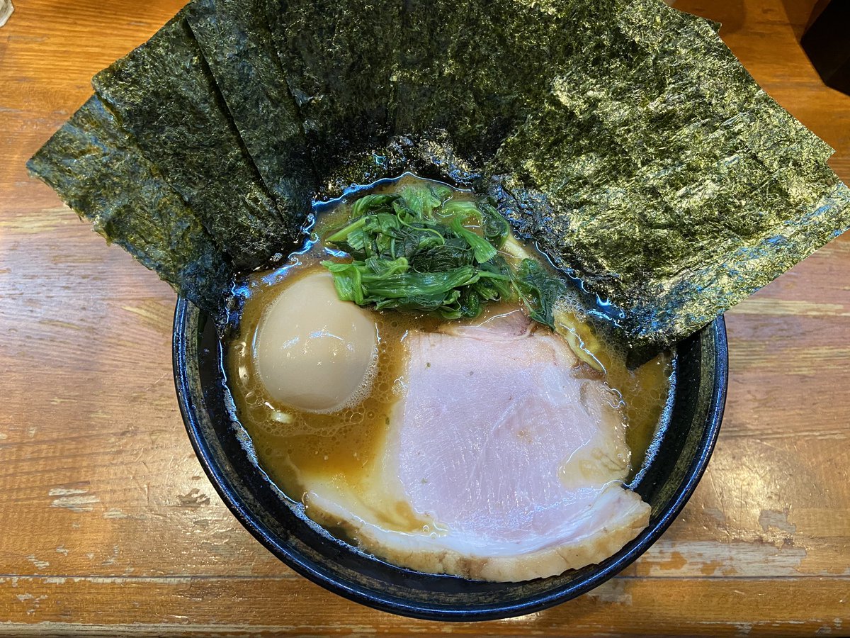 ラーメン探訪『末廣家』白楽ラーメン並・MEGA味付玉子・のり豚骨の旨味が不断に抽出されたスープ、適量の鶏油と強目のカエシで素晴らしい出来🤣👌👍酒井製麺の中太麺は硬めコールで完璧💯💯💯MEGA味玉にデカ..