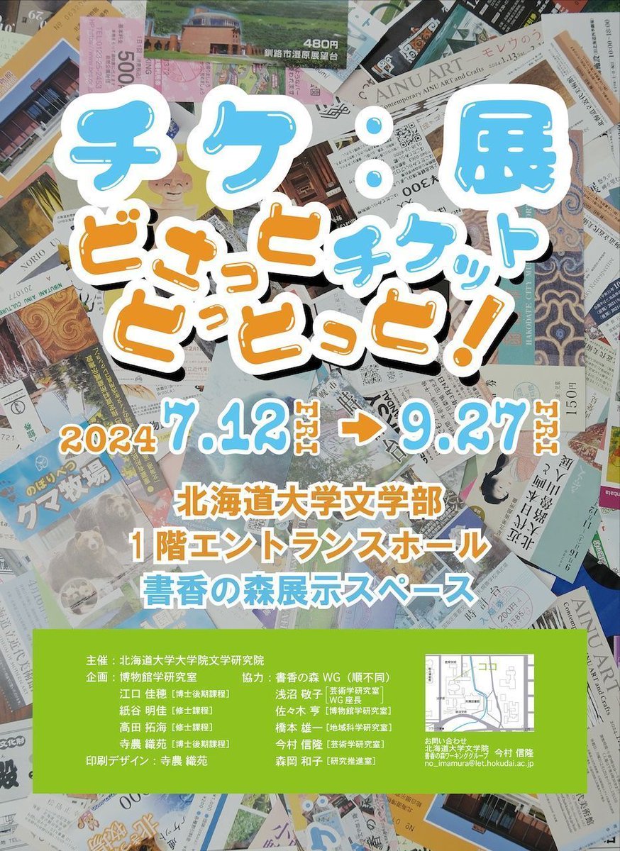 気になる展示を発見北海道大学@HU_Bungaku書香の森展示「チケ:展どさっとチケットとっとっと!」KeMCoで開催した「エフェメラ:印刷物と表現」で思い出の「マイエフェメラ」を語っていただいた参加..