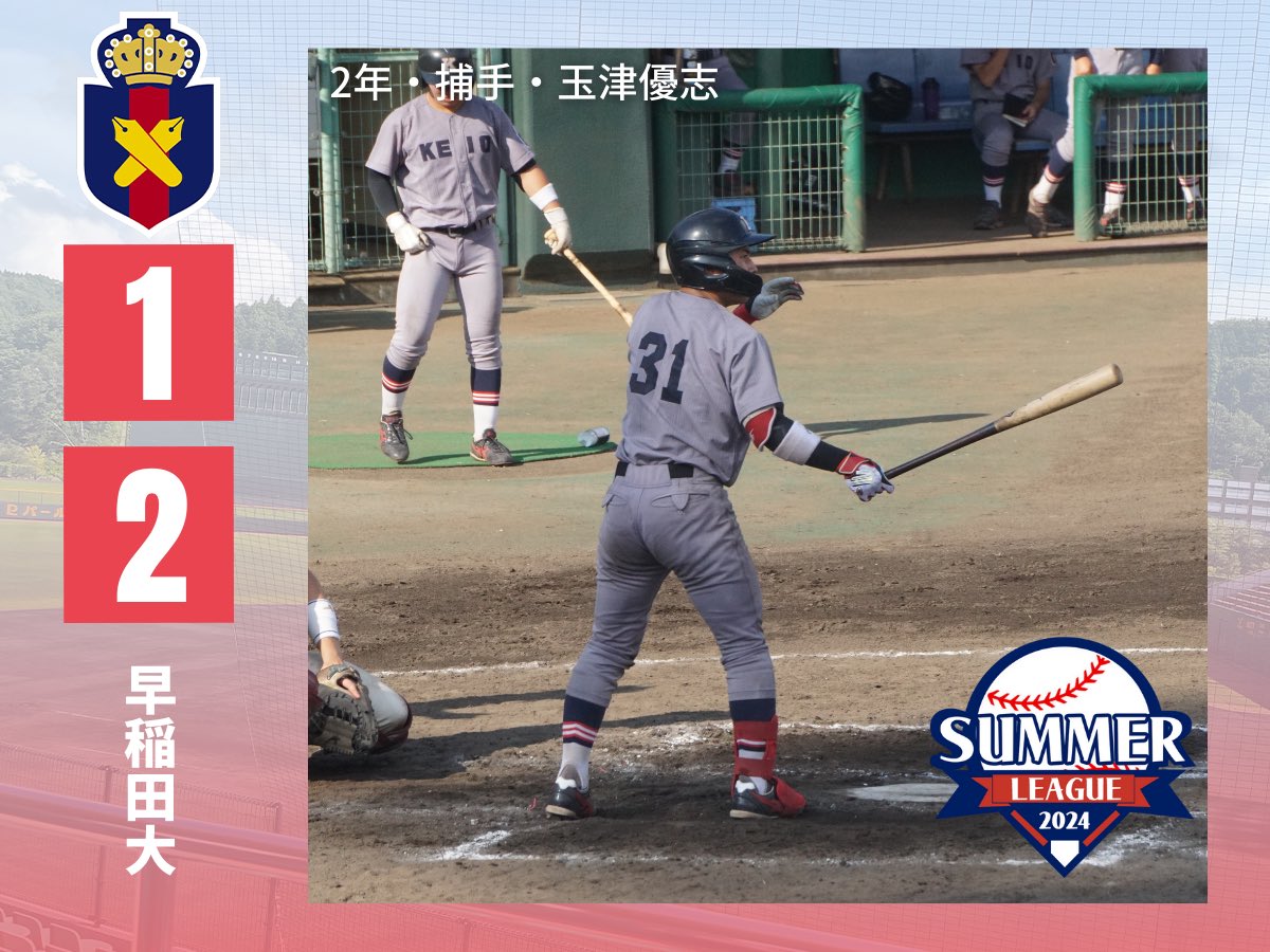 【第10回次世代育成大学野球サマーリーグ試合結果】●慶大(新人戦)1-2早稲田大慶100000000=1早000000002x=2#玉津優志の適時打で先制するも、最終回に逆転を許し、惜しくも敗戦…。#..