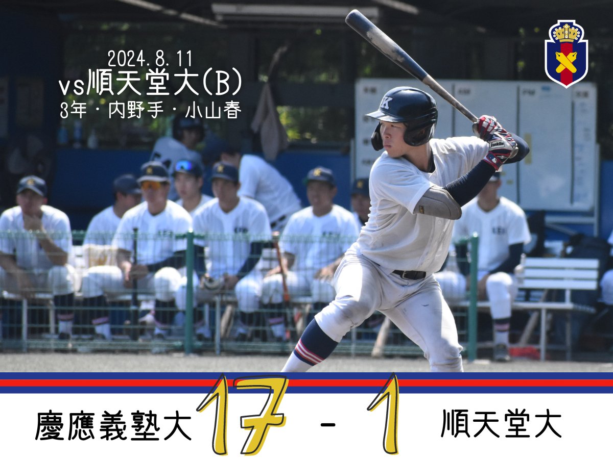 【夏季OP戦試合結果】○慶大(B)17-1順天堂大慶430003016=17順001000000=1#小山春が3ランHRを放つなど、打線が爆発し、快勝!#keiobaseball#tokyobig6#..