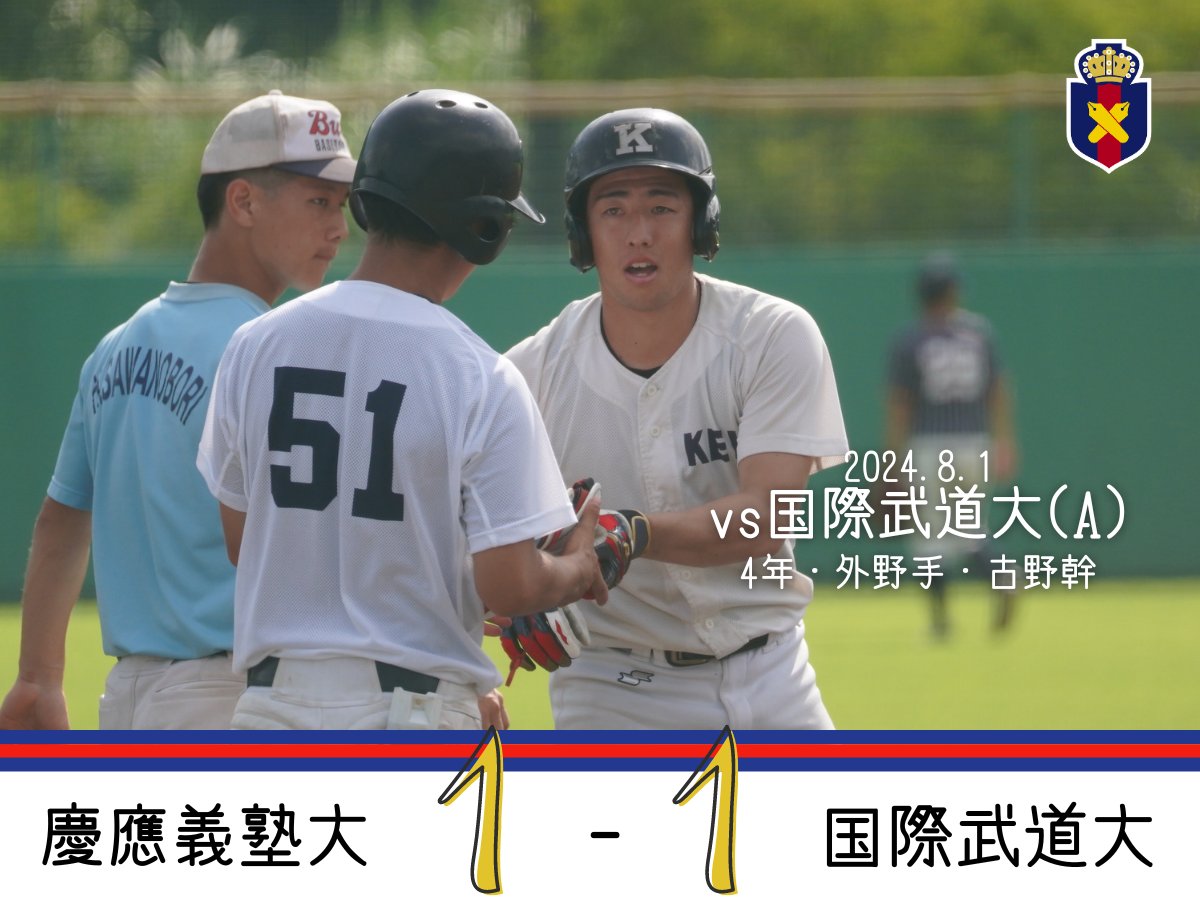 【夏季OP戦試合結果】△慶大(A)1-1国際武道大慶000000010=1国000010000=1#古野幹の適時三塁打で同点に追いつくも、あと一歩及ばず引き分け…。#keiobaseball#toky..