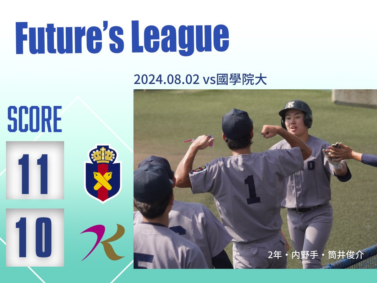 【第5回Future’sLeague試合結果】○慶大(新人戦)11-10國學院大慶016021100=11國003103021=10#筒井俊介の適時二塁打で先制すると、その後は乱打戦を制し、勝利!#k..