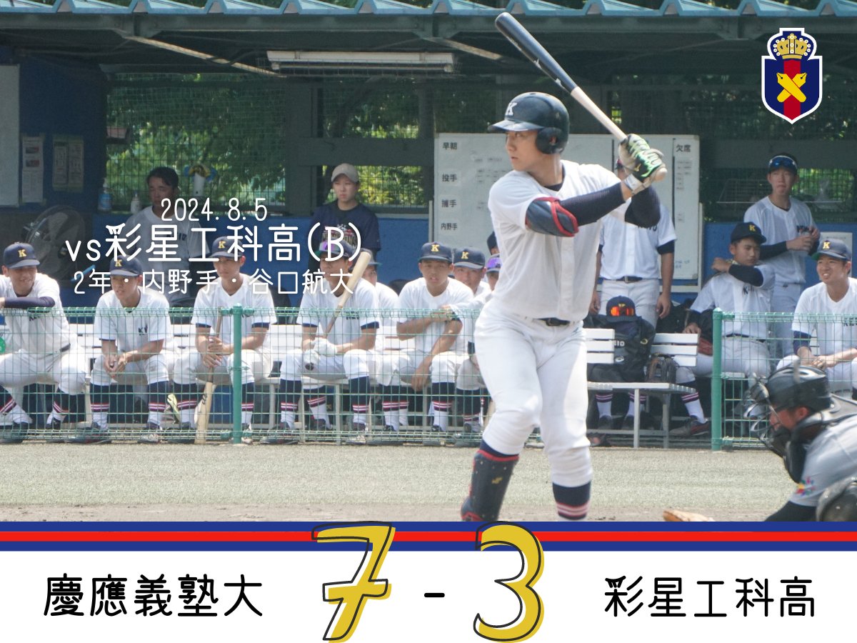 ○慶大(B)7-3彩星工科高彩000000003=3慶00002230x=7#谷口航大の適時打などで中盤に得点を重ねると、そのままリードを守り切り勝利!#keiobaseball#tokyobig6#..