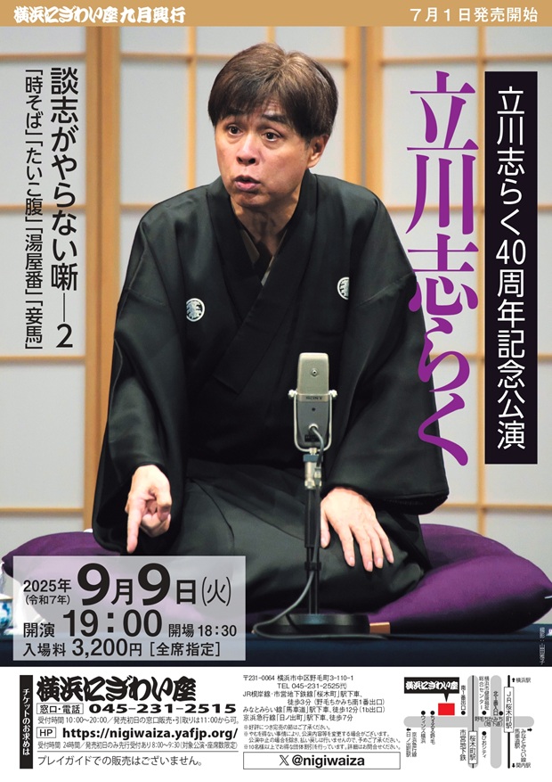 【9月おすすめ公演】9/9(火)19時開演「立川志らく40周年記念公演~談志がやらない噺−2」。出演:立川志らく「時そば」「たいこ腹」「湯屋番」「妾馬」。落語をこよなく愛する談志にも、性に合わない噺が..