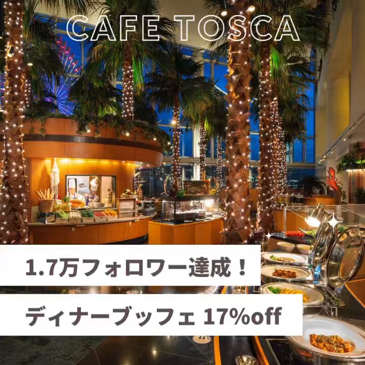 /ホテル公式インスタアカウントにて、1.7万フォロワー達成記念実施中!.「カフェトスカ」平日ディナーブッフェブッフェ料金より17%off‼️詳細はインスタアカウントをチェック!.2024年4月26日ま..