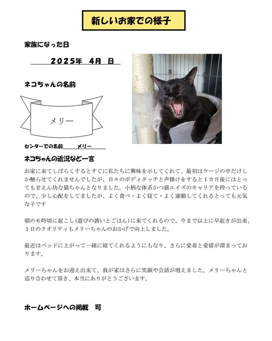 みなさん、こんにちワン! 今日は新しい飼い主さんからのおたよりを紹介するね。 新しい飼い主さん、ありがとう! #保護猫 #新しい飼い主さん決定 #譲渡 #神奈川県動物愛護センター